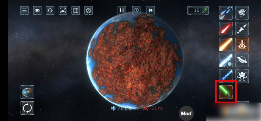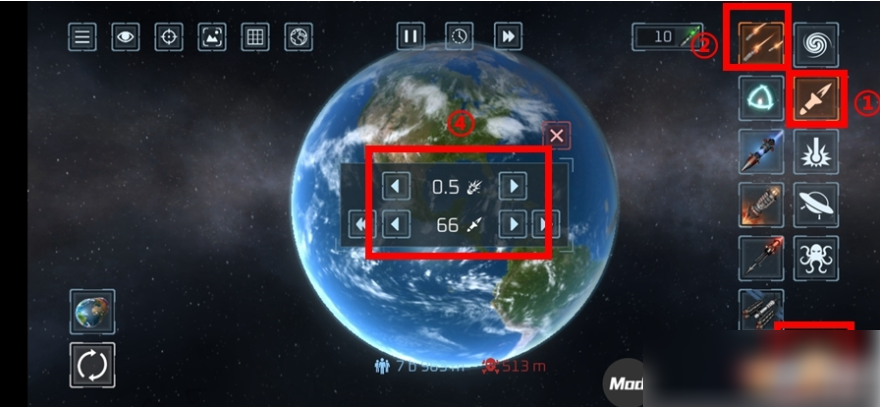 首先点击右边的导弹系统选择第一种导弹,然后点击右下角的齿轮设置按钮设置导弹数量为66个,然后点击地球发射导弹