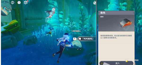 (4)救出【呜呜葡萄】的朋友后,跟着它朋友来到玻璃处对话后,喂第2次【鱼肉】后,第2次任务完成