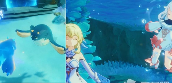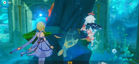 (2)最后会有派蒙提示,让我们回去【水族馆】里面,我们进来后,在石柱下海螺处【挖掘】后,即可获得1个华丽宝箱,开箱后获得隐藏成就《圆滚滚的创化论》,这个任务还挺有意思的