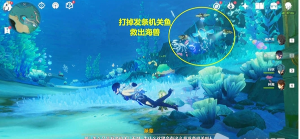 (2)第4次需要我们出【水族馆】后,去右边打掉【发条机关鱼】,救出它的朋友,然后再回去和【呜呜葡萄】对话后,第4次任务完成