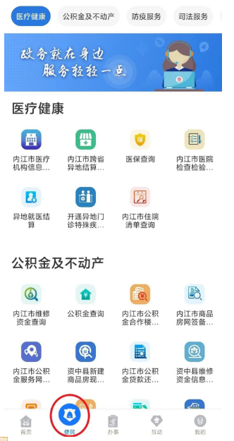 进入“甜成办”页面,点击左下角第二个选项“便民”