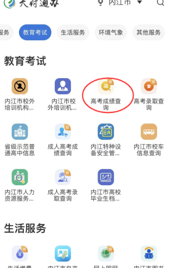 在“教育考试”栏目里选择“高考成绩查询”填写“考生号”“准考证号”“身份证号”“验证码”即可查询。