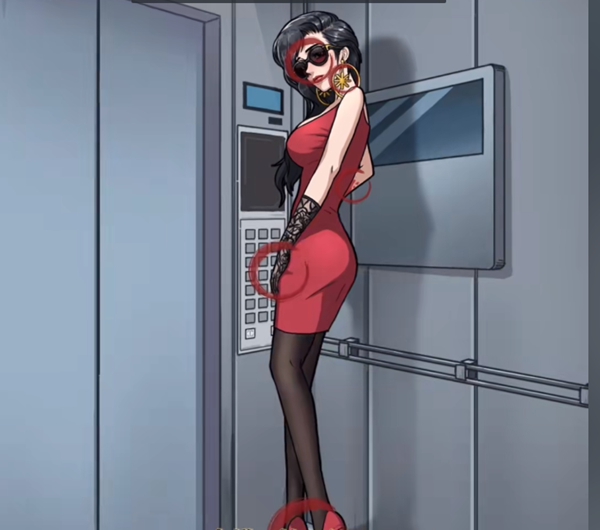 3、到六楼的时候上来一个红衣美女,带着大墨镜点击她的墨镜,耳环,手套,袖口和高跟鞋。