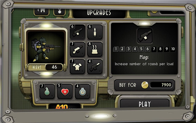 在战斗结束后,玩家可以使用获得的游戏金币来给游戏角色进行升级强化,也可以选择购买解锁新的装备武器哦,游戏中一共含有十多种不同属性的装备武器等待玩家的解锁。同时游戏中还含有道具系统,使用金币也可以购买道具来辅助战斗。