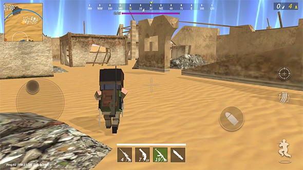 游戏的玩法和人气手游“和平精英”非常类似,游戏开始玩家可以选择合适的位置进行跳伞,在各个房间中搜寻物资,游戏中玩家最多可以拾取四种武器,在游戏界面正下方就会有显示,点击即可随意切换。